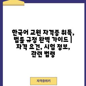 질문. 한국어 교원 자격증 취득, 법률 규정 완벽 가이드 | 자격 요건, 시험 정보, 관련 법령 관련 팁을 알려주세요.