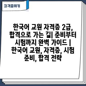 한국어 교원 자격증 2급, 합격으로 가는 길 | 준비부터 시험까지 완벽 가이드 | 한국어 교원, 자격증, 시험 준비, 합격 전략