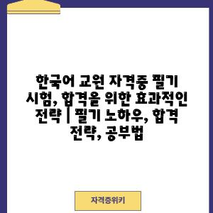 한국어 교원 자격증 필기 시험, 합격을 위한 효과적인 전략 | 필기 노하우, 합격 전략, 공부법