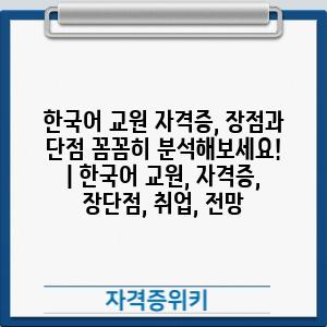 한국어 교원 자격증, 장점과 단점 꼼꼼히 분석해보세요! | 한국어 교원, 자격증, 장단점, 취업, 전망