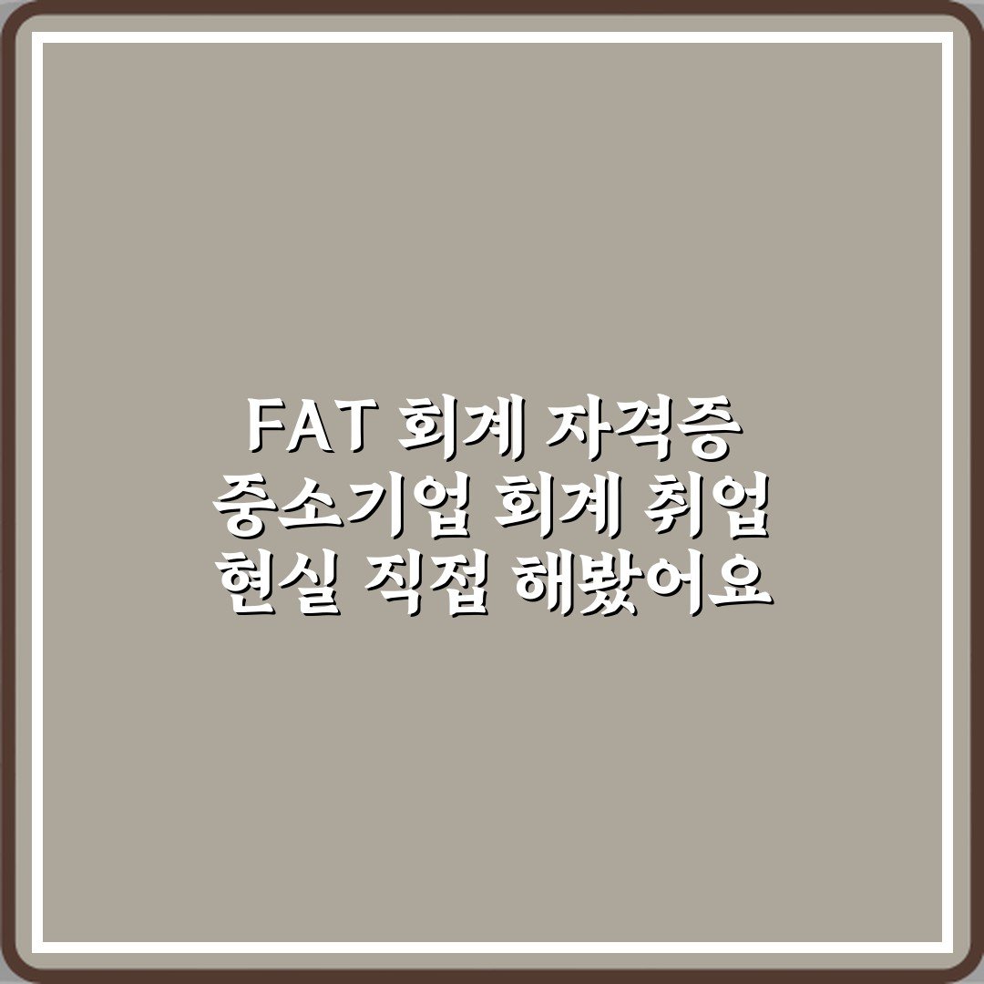 결론적으로 FAT 회계 자격증은 중소기업 취업을 준비하는 분들에게 좋은 출발점이 될 수 있으나, 꾸준한 자기 계발과 다양한 경험을 통해 더 큰 성장을 이루시길 바랍니다.