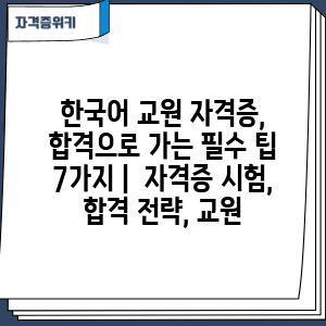한국어 교원 자격증, 합격으로 가는 필수 팁 7가지 | 자격증 시험, 합격 전략, 교원