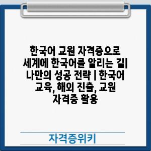한국어 교원 자격증, 꿈에 그리던 한국어 교육의 문을 열어줄 꿈의 티켓! 하지만 막상 시험 준비를 시작하려니 어디서부터 어떻게 해야 할지 막막하셨죠? 걱정하지 마세요! 이 글에서는 시험 준비부터 면접까지, 한국어 교원 자격증 합격을 위한 모든 것을 담았습니다. 전문가의 노하우를 담아 필수 학습 전략과 면접 성공 비법, 그리고 합격에 도움이 되는 유용한 정보까지! 꼼꼼하게 준비하여 당당히 합격의 … Read more