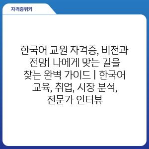 한국어 교원 자격증, 비전과 전망| 나에게 맞는 길을 찾는 완벽 가이드 | 한국어 교육, 취업, 시장 분석, 전문가 인터뷰
