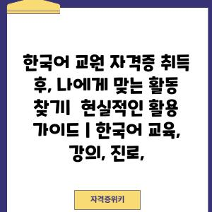 한국어 교원 자격증 취득 후, 나에게 맞는 활동 찾기| 현실적인 활용 가이드 | 한국어 교육, 강의, 진로,