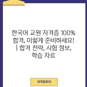 한국어 교원 자격증 100% 합격, 이렇게 준비하세요! | 합격 전략, 시험 정보, 학습 자료