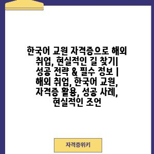 한국어 교원 자격증으로 펼치는 새로운 미래| 숨겨진 직업군 탐색 | 한국어 교육, 새로운 진로, 취업 정보