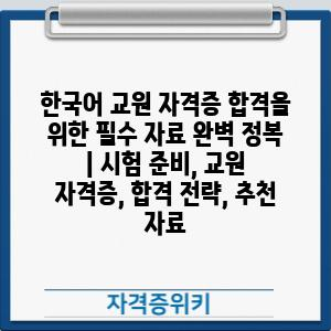 한국어 교원 자격증 합격을 위한 필수 자료 완벽 정복 | 시험 준비, 교원 자격증, 합격 전략, 추천 자료
