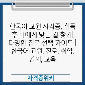 한국어 교원 자격증, 취득 후 나에게 맞는 길 찾기| 다양한 진로 선택 가이드 | 한국어 교원, 진로, 취업, 강의, 교육 한국어 교원 자격증을 취득하셨나요? 축하드립니다! 이제 다양한 길이 펼쳐져 있습니다. 하지만, 막상 자격증을 손에 쥐니 어떤 길을 선택해야 할지 막막하게 느껴지시죠? 걱정하지 마세요! 이 글에서는 한국어 교원 자격증 취득 후 여러분에게 맞는 최적의 진로를 찾는 … Read more
