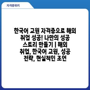 한국어 교원 자격증으로 해외 취업 성공! 나만의 성공 스토리 만들기 | 해외 취업, 한국어 교원, 성공 전략, 현실적인 조언