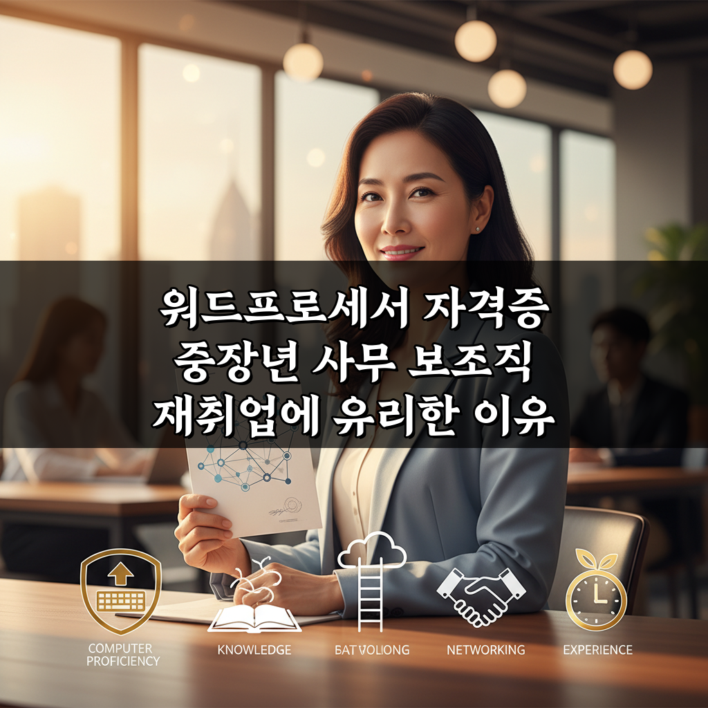 중장년 사무 보조직 재취업, 워드프로세서 자격증으로 성공률을 높이세요! 업무 필수 역량 강화와 경쟁력 확보에 유리한 5가지 핵심 이유를 공개합니다.